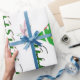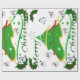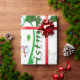 Dieses Design zeichnet sich durch einen grünen Weihnachtsbaum aus, der mit roten, goldenen und weißen Streifen und Weihnachtsbällen, die den Baum schmücken, geschmückt ist. Schneemänner und heilig dekorieren dieses Design. "Frohe Weihnachten" ist auf diesem Design in grün und weiß gedruckt. Dieses Verpackungspapier ist in verschiedenen Stilen, farbigen Hinterrunden und Rändern erhältlich.