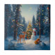 Weihnachtsbaum Szene Niedlich Hirschgewächse Snowm Fliese