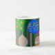 Diese Tasse hat ein Design, das wie Ornamente in Rot, Grün, Blau, Rosa, Gold, Silber und Weiß auf einem Weihnachtsbaum aussieht.
