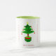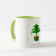 Illustration eines Weihnachtsbaums mit Buchstaben: Frohe Weihnachten und Saisongrüße.