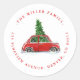 Weihnachtsbaum und kleine Red Car-Urlaubsadresse Runder Aufkleber