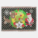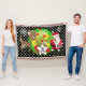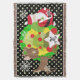 Weihnachts- und Rentierferien werfen Decke, farbenfroh, lustig, niedlich und fröhlich! In seinem roten Anzug und seiner Strumpf-Kappe trägt Santa Clause eine Tüte Spielzeug auf seinem Rücken, einen Weihnachtsbaum mit roten Kugeln, niedlichen braunen Rentieren, Schneeflocken und weißen Polka-Punkten auf einem Hintergrund aus schwarz, grün und gelb. Es gibt auch ein Sterngestalterbanner, das Sie mit Ihrem Monogramm Initial personalisieren können!