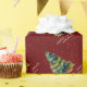 Festliche künstlerische Weihnachtsbaum Wasserfarbe Merry Jolly Red Wrapping Papier. Glücklich, fröhlich und dein Familienname - füge deinen Text hinzu. Künstlerische Aquarell zeichnend von einem bunten Weihnachtsbaum auf einem dunkelroten Hintergrund mit weißen Schneeflocken. Festliches Design für Ihre Weihnachtsgeschenke.