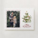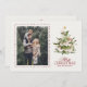 Eine festliche Urlaubskarte mit einem Weihnachtsbaum in Aquarellfarbe, überragt mit einem goldenen Stern und weichen rot-grünen Details. Die Vorderseite bietet Platz für Ihr Lieblings-Foto und eine frohe Weihnachtsbotschaft, während die Rückseite mit einem saisonalen Gruß, den Sie behalten oder durch Ihre eigenen Worte ersetzen können. Ein perfekter Weg, warme Weihnachtswünsche mit Freunden und Familie zu teilen.