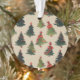 Ein festliches Muster für Weihnachten und Feiertage. Weihnachtsbäume mit Bändern und einem Stern oben.
