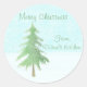 Dieses Label hat meine Winterszene eines Kiefernbaums in einem Schneesturm. Mein digitales Design ist in sanften Farbtönen von Grüntönen und Blau kann Ihre individuelle Nachricht für Geschenkartikel, Bäckereiboxen, Lehrergeschenke und Grußkarten haben.