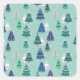 Weihnachtsbäume, blauer Hintergrund Quadratischer Aufkleber