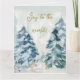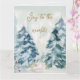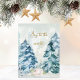 Grußkarte Weihnachten Urlaub. "Joy to the world" mit weißem Wolf um Pinienbäume mit Schnee Falling in Wald. Aquarellmalerei Winter Blues, grün und weiß. Die Weihnachtskarte ist einfach zu personalisieren.