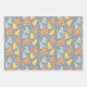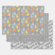 Bunte moderne Weihnachtsbäume "Frohe Weihnachten" und Schneeflocken Urlaub Wrapping Paper Sheet. Ein Blatt zeigt ein niedliches Muster von bunten Weihnachtsbäumen in hellblau, orange und gelb auf grauem Kraftopapier. Der zweite enthält Schneeflocken und der dritte den Text "Frohe Weihnachten" in fett formatierten Typogtaphy. Personalisieren Sie es mit Ihrem Text. Bitte beachten Sie, dass, wenn Ihr Text mehr oder weniger Platz benötigt, er so angepasst wird, dass er die Textgröße entsprechend vergrößert oder verringert.