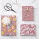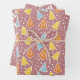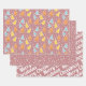 Farbenfrohe, moderne Weihnachtsbäume "Frohe Weihnachten" und Schneeflocken staubige Rose rosa Urlaub Wrapping Paper Sheets. Ein Blatt zeigt ein niedliches Muster von bunten Weihnachtsbäumen in hellblau, orange und gelb Die zweite mit Schneeflocken und die dritte mit dem Text "Frohe Weihnachten" in fett gedruckter Typografie. Personalisieren Sie es mit Ihrem Text. Bitte beachten Sie, dass, wenn Ihr Text mehr oder weniger Platz benötigt, er so angepasst wird, dass er die Textgröße entsprechend vergrößert oder verringert.