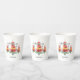 Schöne Aquarellbäume mit goldenem Sternenhimmel akzentuieren diese Papiertassen mit Frohen Weihnachten und Ihrem Familiennamen (oder verlassen leer) in schicken Schriften. PASSENDE Artikel in unserer Sammlung.