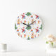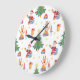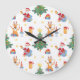Weihnachtsbäume, Santa: Aquarellmuster. Große Wanduhr