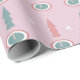 Weihnachtsbäume Schneeflocken Rosa Grün Geschenkpapier