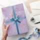 Weihnachtsbäume Tauben Schneeflocken Lila Weihnach Geschenkpapier