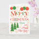Eine farbenfrohe, textbasierte Weihnachtskarte für einen Cousin, mit Polka Dot gefüllten Briefen und Schneeflocken, Weihnachtsbäumen, Sternen und Weihnachtsdekorationen in leuchtend roter, grüner und goldener Farbe. (Hinweis: Die Sterne und Konturen des Goldenen Effekts werden wie sichtbar und nicht in metallischer Tinte gedruckt.)