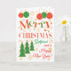 Eine farbenfrohe, textbasierte Weihnachtskarte für eine Freundin mit Polka Dot gefüllten Briefen und Schneeflocken, Weihnachtsbäumen, Sternen und Weihnachtsdekorationen in leuchtend rotem, grünem und goldenem Effekt. (Hinweis: Die Sterne und Konturen des Goldenen Effekts werden wie sichtbar und nicht in metallischer Tinte gedruckt.)
