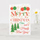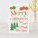 Eine farbenfrohe, textbasierte Weihnachtskarte für einen Tutor, mit Polka Dot gefüllten Briefen und Schneeflocken, Weihnachtsbäumen, Sternen und Weihnachtsdekorationen in leuchtendem Rot, Grün und Gold. (Hinweis: Die Sterne und Konturen des Goldenen Effekts werden wie sichtbar und nicht in metallischer Tinte gedruckt.)