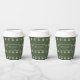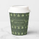 Dieser Papierbecher weist ein Muster stilisierter Weihnachtsbäume und Schneeflocken in hellgrün auf einem dunkleren moosgrünen Hintergrund. Der optionale Text 'Happy Holidays' und ein Label wurden bereitgestellt, um Ihren Namen und/oder anderen Text hinzuzufügen. Suchen Sie ID861 durch ID864, um weitere Farboptionen und andere Produkte in diesem modernen, weihnachtlichen Design-Set zu sehen.