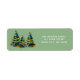 Watercolor Weihnachtsbaumen Holiday Green Rücksendeadresse Etikett. Wasserfarbe zeichnend von bunten Weihnachtsbäumen im Winter auf grünem Hintergrund mit weißen Schneeflocken. Passen Sie die Adresse an.