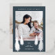 Diese schöne blaue Urlaubskarte beinhaltet festliche silberne Weihnachtsbäume mit klassischem Weihnachtsgrüßen. Auf der Rückseite befindet sich ein volles Foto. Diese Karte bietet einen attraktiven Minimalstil und ist eine süße und einfache Art, Urlaub Freude und Beifall zu vermitteln!