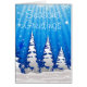 Eine Illustration schneebedeckter Weihnachtsbäume mit blauem Himmelshintergrund mit Sternen und Lichtstrahlen. Hübsche Winterschneeszene.