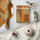 Die farbenfrohe, elegante Weihnachtsverpackung in metallischem Look mit goldenen Weihnachtsbäumen auf einem metallisch-orangefarbenen Hintergrund verleiht Ihrem Geschenkpapier in diesem Jahr eine Touch raffinierten Stils.