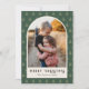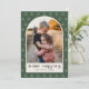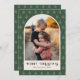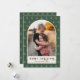 Moderne und stilvolle Weihnachtsbäume Foto Rahmen Urlaub Grußkarte in Grün und Gold. Weihnachtsbaumgestaltung von goldenen Quadraten und geometrischen Kacheln Muster.