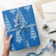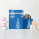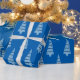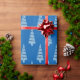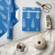 Weihnachtsgeschenkpapier mit blauem Hintergrund und festlichem Weihnachtsbäumprint. Passen Sie dieses Papier an oder kaufen Sie, wie es ist.