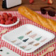 Herrliche Collage von pastellrosa, grünen und goldenen Weihnachtsbäumen, die speziell für sie entworfen wurden.