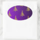 Weihnachtsbaumen Gold auf Lila Ovaler Aufkleber