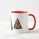 Holiday Keramik Kaffee Tasse mit einem festlichen Weihnachtsbäume gedruckt Design gezeigt. Passen Sie dieses Objekt an oder kaufen Sie, wie es ist.