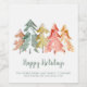Zeigen Sie Ihren geschätzten Kunden in dieser Urlaubssaison Ihre Wertschätzung mit einem Weingeschenk, das mit dieser wunderschönen Aquarell abstrakt von Kiefern in gedämpftem Grün, Rot, Gold und Orange beschriftet ist. Sie können den "Happy Holidays"-Gruß personalisieren und mit Ihren Firmeninformationen (z.B. Firmenname, Website, Telefonnummer, etc.) anpassen.