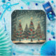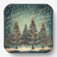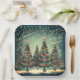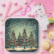 Weihnachtsbaumfest. Dekorierte Weihnachtsbäume mit musikalischen Noten und goldenen Sternen. Festliches Urlaubdesign.
