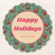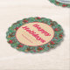 Niedliche Rentiere in roten Bögen mit Heiligenschein und Schnee auf einem waldgrünen Hintergrund