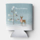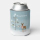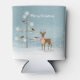 Weihnachtsbild. Hirsche mit rotem Schal und Vögel in schneebedeckten Wäldern. Anpassbare Dockingschablone