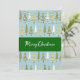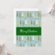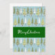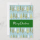 Single Kartendesign mit Weihnachtsbäumen auf der Vorderseite. Die Wörter können im Inneren geändert werden. Die Farben sind blau, weiß und grün. Dank der Hungryjpeg für einige Elemente in der Gestaltung.