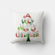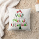 Weihnachts-Wurfkissen, die eine sehr fröhliche Weihnachtsfeier im Weihnachtsbaum-Design liest. Trendy Wohngestaltung für die Ferien.