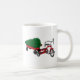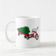 Weihnachtsbaumlieferung in einem kleinen roten Wagen, Dreiradstil. Sehr niedliches Retro-Geschenk.