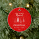 Das Design zeigt "unsere erste verheiratete Weihnachtszeit" in weißer Schrift auf rotem Hintergrund, ein einfaches Weihnachtsbaummuster und ein Foto auf der Rückseite. Personalisieren Sie Ihre Daten mit Ihrem Familiennamen.