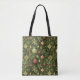 Entspannen Sie in der Tote Tasche mit Aquarellbildern eines Weihnachtsbaumes mit Blätter in dunkelgrünem Rot und Weihnachtsschmuck.