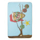 Niedliche braune Eule trägt eine Weihnachtsmannmütze sitzt auf einem Baum Zweig hat einige Weihnachtsschmuck verlegt.