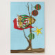 Niedliche Eule mit einer Weihnachtsmannmütze sitzt auf einem Zweig und hat Weihnachtsschmuck verlegt.