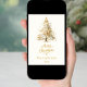 Ein zarter, beige Hintergrund. Mit einem schneebedeckten Weihnachtsbaum dekoriert. Ihr Text und Ihre Namen auf der Rückseite. Frohe Weihnachten wird mit einem eleganten, handgeschriebenen Schriftart geschrieben.