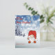 Diese bezaubernde Weihnachtsfeiertagskarte zeigt eine wunderbare Abbildung eines Gnoms vor einem schönen blauen Hintergrund. Zu den weiteren Vorzügen des Hauses zählen ein hübscher Winterbaum und eine Auswahl an Schneeflocken.