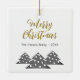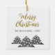 Modernes Weihnachtsbaumskript Minimalistische festliche Familie Keramik Ornament. Drei einfache graue Weihnachtsbäume mit weißen Kugeln. Der Text Frohe Weihnachten ist in einem trendigen Skript. Passen Sie Ihren Text an.
