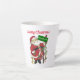 Diese Latte Tasse hat den Weihnachtsmann mit einem grünen, fröhlichen Weihnachtsschild, stehend neben einem kleinen, verzierten Baum, umgeben von Tieren wie einem Hasen- und Eichhörnchen und einem kleinen roten Vogel. Passen Sie den frohen Weihnachtstext oben mit der Vorlage an.