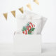 Auf dieser hübschen Papiertüte befindet sich ein mit Süßspeisen bestrichener Hundeknochen, der in einem Winterurlaubsbukett mit Süßspeisen in Aquarell aufgetragen wird. Der Text lautet "Leckereien", dann können Sie mit dem Namen Ihres Hundes unten personalisieren.