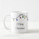 Feierliche Feiertagskaffee-Tasse mit Weihnachtsbeleuchtung und Schriftzeichen-Design. Mit einer schwarzen, anpassbaren Schrift können Sie Ihre eigenen Informationen hinzufügen. Eine farbenfrohe Ergänzung zu Ihrer Feier.