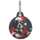 Niedliche Darstellung eines Berner Berghundes, gekleidet als Weihnachtsmann, der mit dem Fahrrad fährt. Ideal für Hundeliebhaber und Hundeeltern während der Ferienzeit.