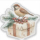 Ein lustiger Vogel-Aufkleber, um jede Urlaubskarte, Umschlag oder Geschenk zu flicken! Ein süß-brauner Vogel steht auf einem Sprig auf Evergreen.